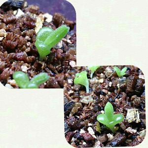 2017.1.27 モニラリアオブコニカ種蒔き3日目♡ 出てきた芽が緑になって小さい双葉に(´◡`๑) 成長早すぎる!