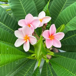 今朝はひんやり涼しかったので 畑作業をしてきました ① プルメリア これが最後の花。 風が強い日は鉢が倒れてしまうので 剪定して挿し木を作ります。 ②③④ 胡蝶蘭 まだまだ咲いてくれます♪ ⑤ clowesetum 新芽🌱祭り🙌