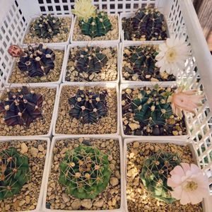 久しぶりに行ったダイソーでミニサボテン入荷してました あなた方はどなたでしょう⁉️ 3個100円のプラ鉢も入荷してて爆買い😅
