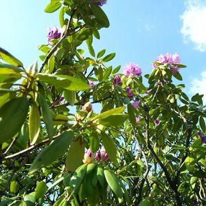 樹齢80年の西洋シャクナゲ。 大きく、逞しい姿で青空に映えていました。 男山酒造にて。