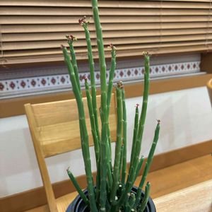 ユーフォルビア フォスフォレア 初めて我が家の仲間入り🥰 今日はバレンタイン💌ですね! 3枚目は、嬉しいプレゼント🎁 ラッキーのちょい調べ👀👇 植物の仲間のユーフォルビア。フォスフォレアは緑枝類に分類される、ミルクブッシュに似た太い棒状の茎を直立させる多年草です。夜になると燐光を発することから「夜光キリン」の和名もある不思議な植物です。茎の先端にハナキリンに似た緑色の花を咲かせます。茎の中に水をたくわえているので水やりは控えめにしてください。 学名:Euphorbia phosphorea タイプ:トウダグサ科ユーフォルビア属の多肉植物 原産地:ブラジル東北部 日照:日向~明るい半日陰 耐寒温度:8℃ 管理方法: 明るい場所を好みます。春~秋は戸外でも育てられます。急に強い直射日光に当てると葉が日焼けすることがあるので注意してください。暖房・冷房の風が直接当たる場所は避けてください。寒さには強くありませんが、8℃以上あれば大丈夫です。室内の暖かい場所に置くようにしてください。10月頃から徐々に水やりの回数を少なめにして育てると、寒さに強くなります。 **✿︎❀ ❀.(*´▽`*)❀. ❀︎✿︎*