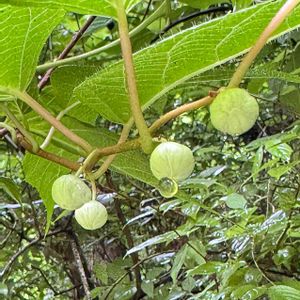 マタタビ この時期葉が白くなってきて、あぁ ここにも生えていたのかと気付く(^^) 雌雄異株で、雄花の一部はかの有名なマタタビミフクレフシとなり木天蓼(モクテンリョウ)として珍重されるのだけれど、蕾の時にはまだどちらか分からないな😃 ✳️マタタビツボミフクレフシ、マタタビミフクレフシ、虫こぶ、虫えい などのキーワードがGS内にもあります(*^ー゚)