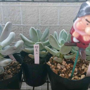 おはようございます🙋 毎日朝の少しの時間のパトロール続けてます🚨 気になった子たち✨ ⬆セダムちゃんワゴンの特等席はマジョールさんとミルキーウェイさん✨ 植え替えも落ち着いて元気になってきました😁✨ ⬅チョコチップさんも根づいて元気です✨ ↘先日夜な夜なもけもけさんたちの植え替えしました✨ お気に入りのテディベアさん🐻はおばちゃんの鉢に✨ もけもけさんたちは七人の小人の先生が見守ってます🎵 久々の紹介✨ うちでは七人それぞれ見守ってます🎵 ➡おひさまの当たらない棚の活用方法を悩んでましたが、おばちゃんのリメ鉢を置くことにしました✨ 選びやすくなりました😁✨