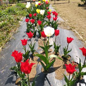 こんばんは🌃🤗今日もお天気☀️で、午前中のチューリップの投稿最後になりました。 今まで見て下さりありがとうございました🙇♥。最後に咲いた赤色の🌷も咲き揃い、他の🌷に追いつきました。1番挽きたて役で頑張りましたね💓 沢山咲いてた中にも赤、黄色ピンク色、紫💜色も珍しい形で艶やかに咲いてくれて今年は頑張って咲いてくれました✨。 お陰様で花壇が一気に春らしくなりました🙆🌷🌷🌷見て下さり嬉しかったです👋✌️🌷🥰。来年も💪頑張ります😄。