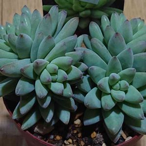 【エケベリア属 ピーチプリデ】 Echeveria 'Peach Pride' (×パリダ?の交配種) 「う~ん(¯―¯٥)、形がイマイチ」 と思っていたら 根本で👶を抱えてました 「紅葉期にピンクに色づく 木立性 日本だけでなく韓国中国欧米まで、よく見かける割には「詳細不明」 片親はパリダ かと噂がある」 【多肉植物専門店 ビスタ】さん のサイトから抜粋 https://pukubook.jp/detail/Echeveria_Peach_Pride ✏️自分用❄️越冬メモ✏️ 直射日光、風通しの良い場所を好む マイナス1~2℃まで耐え、 霜に当てても可 _φ(・_・ 【サボテンランド Cacto-Loco】さん のサイトから抜粋 http://cactoloco.jp/dic/A233.html
