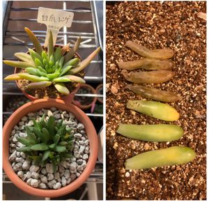 ツメレンゲもそろそろ終わりかな、葉がしなしなになってきた( ´∀`) そしてこの前葉挿しした恋心は、4つジュレちゃった(´ω`)