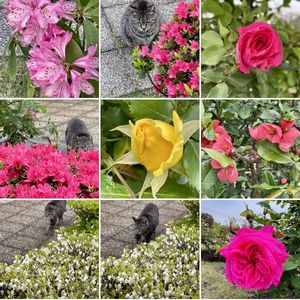 お墓参りにて② 4月20日 バラ🌹が少しだけ咲き始めてました シャクナゲ、ツツジ、バラ、ボケ、ドウダンツツジ おすましニャンコ🐱も特別出演 🏷ニャンニャン祭り に参加します