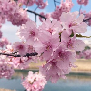 こんにちは😃🌸 河津桜のお花の写真🤳を娘が送ってくれましたよ🥰🥰👍 ◎ 河津桜 河津桜の魅力は、早咲きの桜であることと花色ではないでしょうか。ソメイヨシノの淡いピンクに比べ、はっきりとした明るいピンク色。でも決してビビットではない春らしいピンク色は、見ている人にこれから来る春を期待させるような色です。 河津桜はソメイヨシノと同じように花の後から葉が出てきます。山桜の種類などは花と葉が同時に出てきますので、葉の出るタイミングが違います。河津桜は、花が咲いている間は木全体が花で覆われたようにピンクに染まって見えます。 とても綺麗に咲きました😃🌸 気温が上がってので一気に満開になりました。 (((o(*゚▽゚*)o)))♡🌸🍃🌸🍃🌸🍃