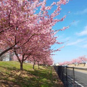今日はお仕事お休みだったので、昼下がり久しぶりに自転車出してサイクリング🚲 河津桜が満開でした〜🌸 お花見散歩してる人たちもたくさんでした🚶♀️
