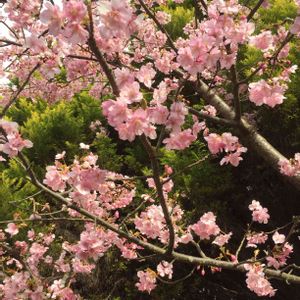 近所の河津桜が去年より3週間ほど早く、ほぼ満開となりました。