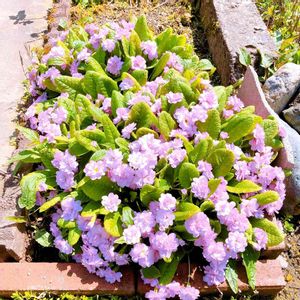 プリムラ ベラリーナ アメジストアイス** 昨年12月に欲しかったベラリーナを見つけてGET♡ 耐寒性・耐暑性に優れていて 雨にも強いとのこと。 半日陰がいいということだったので あまり日の当たらない場所に置いていたら… 花が咲かない🤔 最近、日が差す当たるところに移動したら やっと咲き始めました‼️ 今日は雨ですが…☔ 嬉しい😆⤴️💓