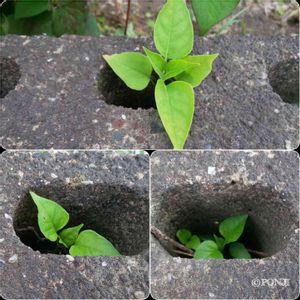 〓夜の投稿便🚚〓 <🌱🌱🌱👀‼️> ブロックの穴から顔を出しはじめたオシロイバナさんが3株😲‼️ 種を撒いた覚えもないのに この調子だと どこから芽吹くのか ヤバイよ!ヤバイよ! 以前テレビのニュースで観た 庭に植えてあった竹が 部屋の畳を破って顔を出したと言う😲‼️ 頼みますょ~~🗣️ オシロイバナさ~~ん😂🤭🙊 🏷️チーム岐阜🍀 ٩(๑>∀<๑)۶♥Fight~~♥ いつもありがとうございます(*- -)(*_ _)ペコリ✨🌹💫✨🍀😃💕💞
