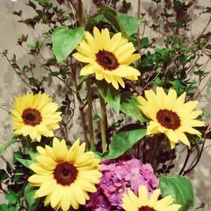 今日は父の誕生日です🎂 買って来たミニヒマワリと庭の花と植物をアレンジしてみました🤗 ヒマワリで元気パワーを届けます😀