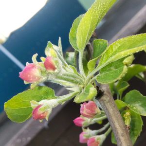りんごに紅い花芽が着きました。😃☺️💮 植えて4年、津軽とフジ林檎🍎2本植えてもう1本は花芽が出て来ていないので、観賞のみ林檎の実は期待出来ません。 初めて見る林檎の花綺麗ですね😍💖