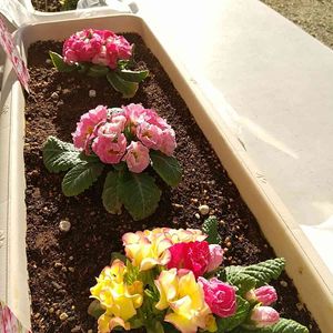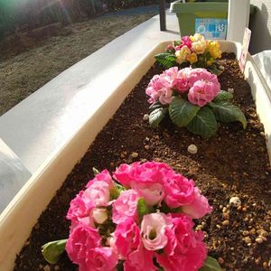 こんにちは👋😃 3月も宜しくお願いします🙇♀️⤵️ 昨年11.12月に花なしを購入して プリムラ5色を一つの鉢に植えました🌱 別々に投稿してましたが やっと5色咲いてくれました🥰 一番最後に咲き始めたのは (まだ少し顔が見えてきただけで🙏) プリムラ アコーリス 群青の空** 右側には、同じくアコーリス あずき色の恋** 奥の3つはジュリアン マスカットのジュレ プリンアラモード ブライダルベル なんとか間に合った👍