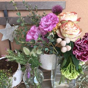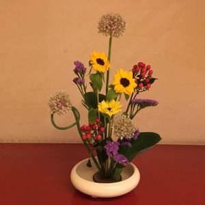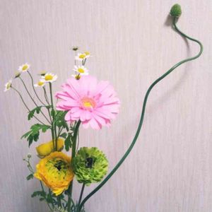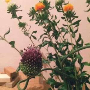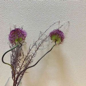 池坊お稽古 今日のお花、初心者の私にはとっても難しく バランスが上手くいかず…… ガーベラをいけるのに触りすぎてしまい 茎が柔らかくなってしまったり…(ー ー;) だけど、生け花がとっても楽しいです! 好きなお花に夢中になれるって幸せだな〜(*´꒳`*) そして、先生にお花の名前聞いたのに 忘れてしまいました。。 どなたかムラサキの丸くなったお花の名前 ご存知の方いらっしゃいますか??