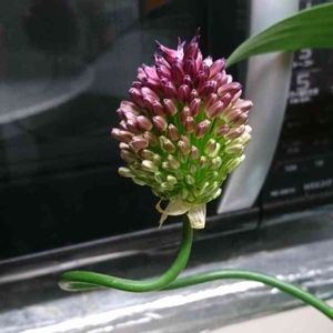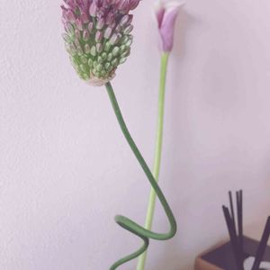 可愛いねぎ坊みたいなお花は… アリウム 丹頂💜 チューリップと一緒に植えてようやく咲きましたよ😊