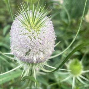 おはようございます(*^^*)💭⸒⸒ 頂き物のお花の中に見たことないものが… このトゲトゲした子はなんていう名前でしょうか。 ※教えて頂きました‼️ 真理さん🌟いつもありがとうございます! (*´▽`人)*:..。♡*゚¨゚゚・*:..。 【…φ(..)メモメモ】 ○チーゼル(ラシャカキグサ) 7月~9月に薄紫色の花を咲かせる。 ※マツムシソウ科 背丈の高い、大型二年草 ▷日本には明治時代に渡来 開花前は鋭いトゲ状の総苞に囲まれた楕円形で、花の後の実に見える。 その苞の隙間から薄紫の花が無数に開花する。 𖡼.𖤣𖥧𖡼.𖤣𖥧⚘今後の経過も楽しみです🎶✨