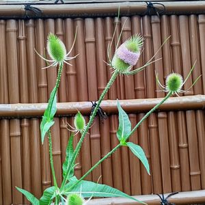 今日は早く目が覚めたので チーゼルを一部剪定😅 とっても可愛いけど、棘が💦 薔薇の手袋🧤はめたら大丈夫でした