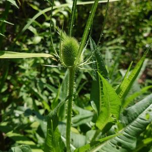 チーゼルの蕾はまるでエリンジウムみたいです! タワシだからなんだかの原料になるとか? 葉裏の棘が凄すぎて、腕に切り傷できました笑