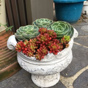 玄関先第3弾 あるもの詰めました。 ごっつ疲れた😭 もう晩ご飯作られへん😏 このセダム ブレビフォリウム?もうね、 ブロッコリースプラウトを1本1本入れてるみたいで イライラしてきた。 途中から遠い目になってきたので ドバドバとぶっ込んでみました。 自分達で頑張ってくれ👍 これで玄関先は完了。 のはず😅