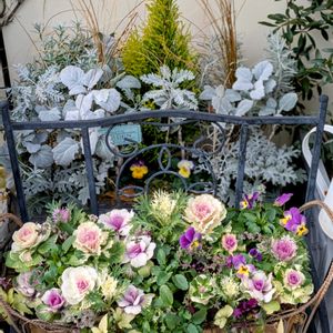 こんばんは〜🌛✨ 既に5時を迎えましたが… 西陽が明るい🔆 陽が落ちるのが長くなり嬉しいッ☺️ 葉牡丹の寄せ植え💗🤍💜💗🤍💜 一緒に寄せたビオラがやっと咲き初めて賑やか〜 & 一昨年の秋に寄せ植えに利用しましたコニファーとシルバーリーフ達… 昨年夏越しをし昨年の11月に横長の鉢に植え替えを… いい感じに鉢に馴染んできた感じ…☺️🎶🎶