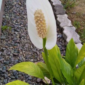 3月19日 今日のお花 🤍🌿スパティフィラム🌿🤍 花を囲む楕円形の苞が白く大きくよく目立ちます。 白い大きな花弁のように見えるのは仏炎苞で、その中にある棒状のものが、小さな花の集まり。この花の形はサトイモ科の特徴で、サトイモのほかミズバショウなどにも同様のつくりが見られる。細長くすっと伸びた花茎の先に花がつき、葉はツヤのある緑色で、スマートな印象。 別名 「笹団扇(ささうちわ)」 明治時代に渡来。 ①② 2023.7月撮影 服部緑地都市緑化植物園 温室にて ③ 2022.6月撮影 🏷️白い水曜日♡
