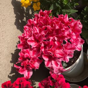 本日2投稿目😊お気に入りのペラルゴニウム❣️ カルセオラリアは種を付けてます。🤗どちらも長く花を楽しめるので最高です💕