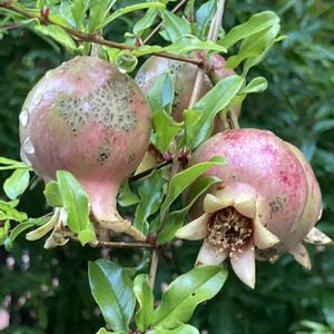 ザクロ'(柘榴) ザクロの実を見つけました 今年は色つきがあまり綺麗ではありませんがこれからまだ変化するのでしょうか