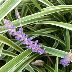 ヤブラン(薮蘭) 斑入りのヤブラン 毎日歩いている道路脇のヤブラン 花が咲いているのに気がつきました