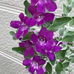 レウコフィルム 二度咲きです 7月19日に同じ花を投稿しています なんと僅か2ヶ月でまた咲き始めました 紫がかったピンクと銀葉がマッチ、好きな花です