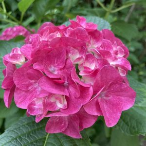 アジサイ(紫陽花)ー2 わがやの赤いアジサイが色づきました 年々赤色が浅くなっているような気がします 地面のアルカリ度のせいかもしれません