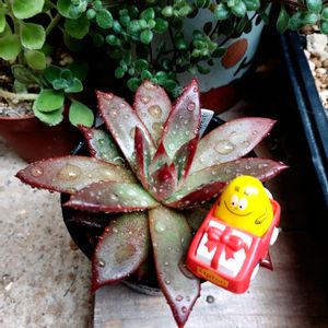 多肉たちは裏庭側のカーポートを まるごとビニールで覆ってるだけの 簡易ビニールハウスの中にいます ここ数日、夜中から朝にかけての 最低気温はマイナス5度🥶 ビニールハウスの中も 1度未満という寒さですが 水やりしてないし氷点下じゃないし🤔 と心を鬼にしてプチプチすらかけずに 過ごさせています💦 この子もまだ根付いてないのに そんな過酷な状況下におかれて 真っ赤になって怒っています🤣 今日はプチプチかけようかな 毎晩、気温が気になって寝られません😅