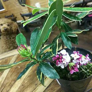 少しだけ咲いたよ…… 沈丁花サン…… 𖡼.𖤣𖥧𖡼.𖤣𖥧𖡼.𖤣𖥧 お友達の家から7年前にオスソワケ…… 挿し木でここまで成長したよ…… ( ´͈ ∇ `͈)੭ु⁾⁾·°˖✧˖° もうすぐお花のいい香りが漂うかしら……(*˘˘*).。.:*♡