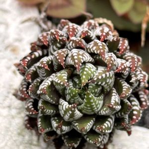 こんにちは🤗 今日は12日なので お久しぶりの、12の巻さんです〜°ஐ.* 冬の間、二週間ほどは 室内管理をしましたが 殆どを、外の簡易温室で過ごしてもらいました🦚 色も悪く、痩せてしまって心配しましたが 水を吸って、ムチムチしてきたので ホッと一安心ですෆ˚* 表面のゼブラ柄と内側の パウダーシュガーを振りかけたようなドット柄が、たまりません🥰🍀*゜ •*¨*•.¸♬︎•*¨*•.¸♬︎•*¨*•.¸♬︎•*¨*•.¸🧚♀️🧚