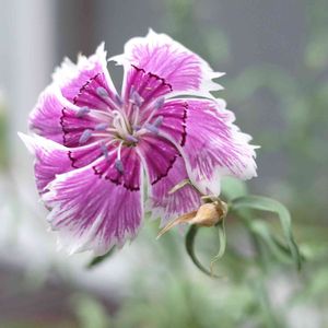 頂いた種(ミックス)を蒔いたのが昨年のいつだったか、、、 やっと咲いてくれました😆🎵✨ ナデシコの仲間でしょうか? かわいい柄でお気に入りです🎵