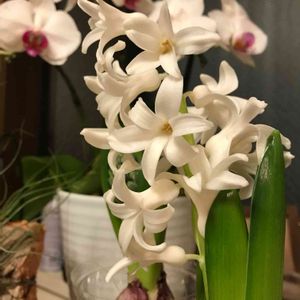ホワイトのヒアシンスさん満開🌸 クリスマスに購入した胡蝶蘭さんはまだ咲いてくれてる🌸 我が家のお色気担当♡