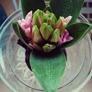 ヒアシンス水耕栽培 かわいいピンクの花が見えてきた‼
