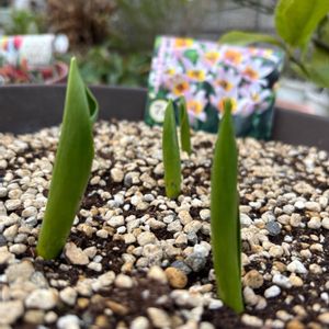 こんばんは。 ギリギリセーフ❣️今日のお花チューリップ🌷 お花はまだまだなチューリップ🌷の芽です。原種チューリップまでの球根植えてみました。元気に出揃ってます。 しかし、もう一種類植えた子たちはまだ一つも芽が出てきません😱種類によっても違うのだろうけど、そろそろ出てきてもいいのでは⁉️😆 ②は、先日某園芸店で40%引きと、お得になっていたのでダブルのクリスマスローズさん、お迎えしました❣️蕾もまだまたあるし、この色合いが可愛いです🩷 ③は、いよいよ顔を出し始めた零れ種の多分ウィンティーさんの蕾❣️😆色はまだまだわからないけど、零れ種で2株出てきてます。背は低いですよ😭ちなみに花の茎は2センチくらいです😭お花咲いてくださいませ🌸🌼