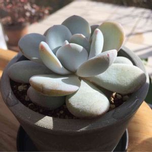 ✨ラウイ(エケベリア属)✨ 千葉県印西市にあるサボテン・多肉植物専門店「グランカクタス」さんより前picのドドソン紫オブツーサとともお迎えしたラウイ♫ こちらもモスポットに植え替え😊 白い粉で覆われた葉と色味が柔らかくて良い雰囲気✨ 他のエケベリア属は屋外ですがラウイはとりあえず屋内で過保護に育てたいと思います🏠