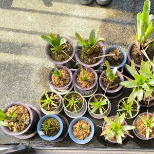 カトプシスとブロッキニアです🌿 寒さはもう無いと思い 本日から外へ出てもらいました。 日光を良く浴びてたくましく育って!