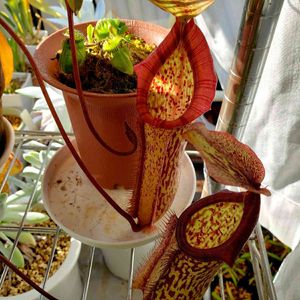 ウツボカズラの仲間の ニキスタ(中央) ミランダ(下)です🌱 大きめのツボが出来ました❗