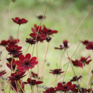 コスモス 変わり種編 コスモス畑とは別の花壇に咲いていました ①② チョコレートコスモス:チョカモカ ③ チョコレートコスモス:赤トンボ ④ ダブルクリック ⑤ センセーション・ダズラ