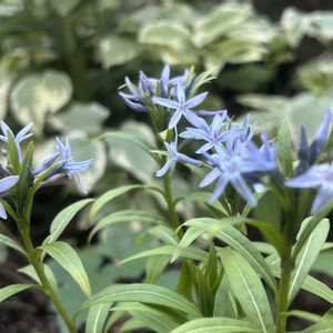 おはようございます☀ チョウジソウ 我が家の花壇に〜 絶滅危惧種だったんですね🫢 控えめな水色 そして爽やかです😌🌱🌿 二枚目はデルフィニウム 隅っこに置いやられてた子を持ち帰り 花壇に〜蕾がプックリ開花始めました 🤭🤗💞