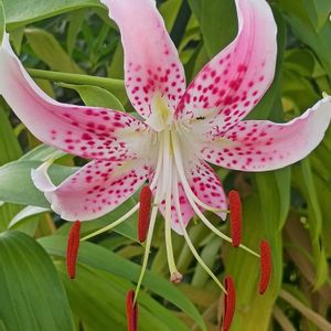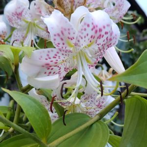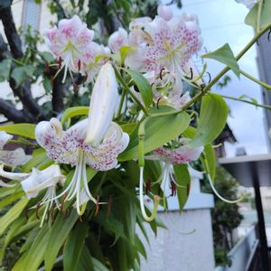 タイワンカノコユリ Lilium speciosum var.gloriosoides 非常に珍しいタイワンカノコユリが初開花しました😍😍 タイワンカノコユリは台湾北部と中国南東部に自生しています。日本原産のカノコユリと花の形は同じですが、花の配色が異なります。 実物は初めて見ましたが、想像以上の美しさに見惚れてしまいました😍😍 栽培は普通のカノコユリ同様で丈夫ですが、入手難易度が非常に高いので、個人宅で咲かせている人は極々僅かだと思います。