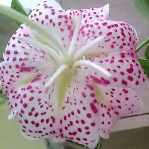 昨日の今日で あっという間に開花🌼 鹿の子百合。 優しい白ピンクでした。手前は たぶん 濃いピンクの予感。反り返るように咲く 特徴的な鹿の子模様が愛らしい百合。 さっそく 玄関に移動して お披露目しました。