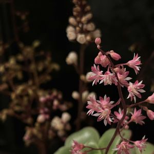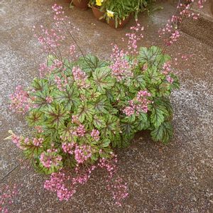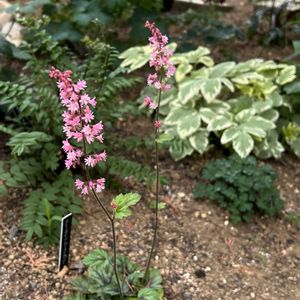 ヒューケレラ ピンクレボリューション┈ ꕤ ヒューケラとティアレラの交配種。 花はヒューケラに似ているけどヒューケレラのほうが花が大きいのかな。 ピンク色の濃淡が可愛い🩷