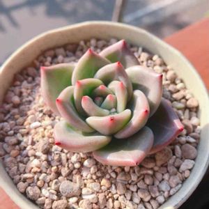 メルカリシリーズ①笑⃝ またもや、欲求に勝てずポチッと・・・😅 宮城には、多肉取り扱い店が少なく 韓国苗が手に入りにくい・・・ 即売イベントも、仕事で行けない事が多いので、ネット購入に走る・・・笑⃝ ベニオシン!?プリドニス交配種 とても、綺麗で、ムッチリ状態で 届きました!! ピンクの縁がとても綺麗😍