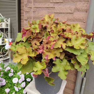今日も肌寒いですねぇ彡:(( ˙꒳˙ )):彡 一気に季節が変わったという感じ💦 そして私。ついにヒューケラをお迎えしてしまいました🎵 去年から気になっていましたが、去年は多肉にアタフタしていて、何度か見かけても見送っていました… 今回は園芸店で、色も揃っていたので、帰宅後に後悔しないように5色😆 ちょっと鉢が小さかった気もしますが、昨日やっと、何とか詰め込みました💦 ヒューケラって、四季で色が変わる楽しみがあるだけではなく、冬なんか-15℃まで行けて、暑さにもまぁまぁ行けて、地植えならほったらかしでも大丈夫とか、日陰でも大丈夫とか…すごい✨👏 良い事しかないじゃないですか😮 名前は色々あって多いので、ヒューケラだけにしようと思ったのですが、最初だけ記録しておこう(* ᐕ)