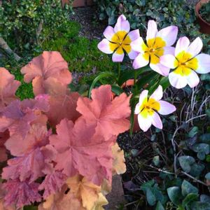 1年くらい前に購入したヒューケラ 。種類によってバリエーション豊か、多年草なのが良くて自分の中で一時ヒューケラブーム到来しました笑 夏は色褪せた感じの葉だったけど、冬から春はいい色がでてます!こちらも植えっぱなし♡笑